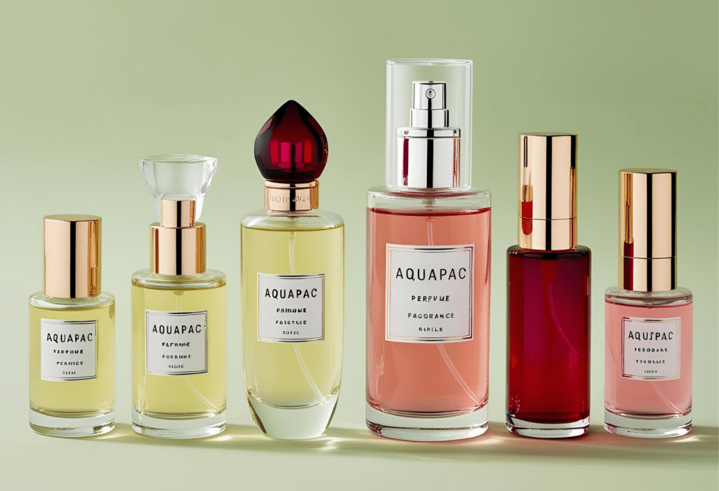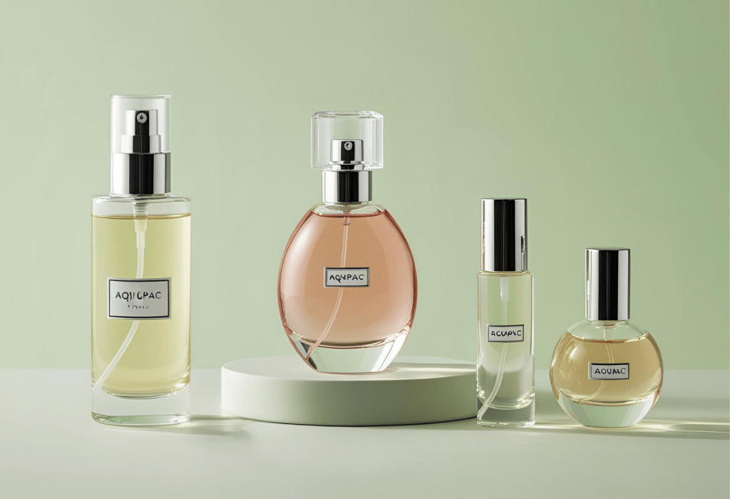 Elegant perfume bottles in glass or plastic, available in different sizes and closure types, including sprays and roll-ons. Designed to enhance the luxury appeal of fragrances.